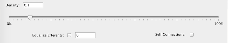 What percentage of the total possible connections should be created (0 = no connections; 1 = all possible connections). This can be adjusted in the text field (where it is expressed as a value between 0 and 1) or using the slider bar.