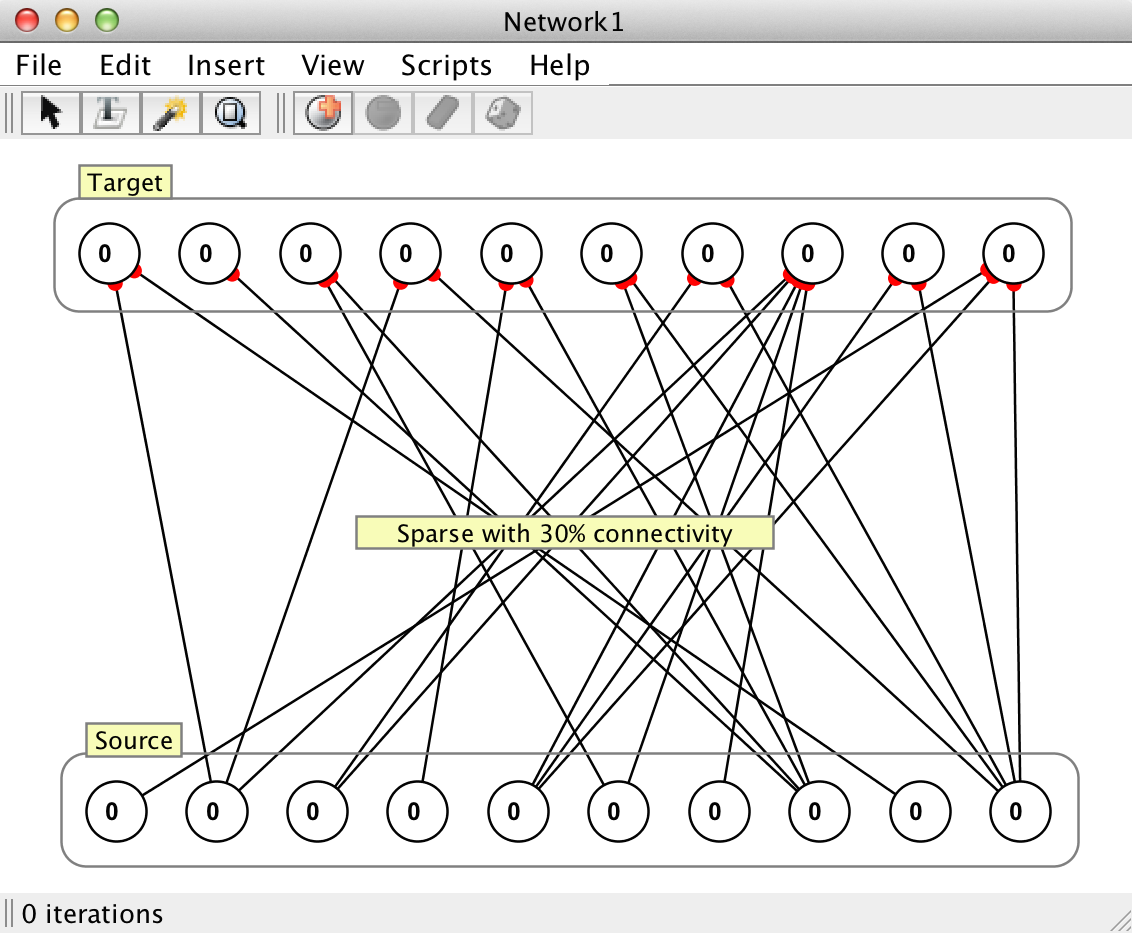 Sparse actually has two options for variable density connections, which operate slightly differently: probabilistic connections and fixed number of efferents. These options correspond to whether the Equalize Efferents checkbox (described below) is checked.