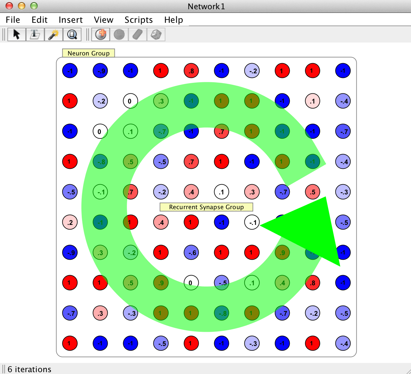 Momentum: Here the group of synapses is replaced by a green arrow with an interaction box inthe center. This is the preferred mode of dealing with large groups of synapses.