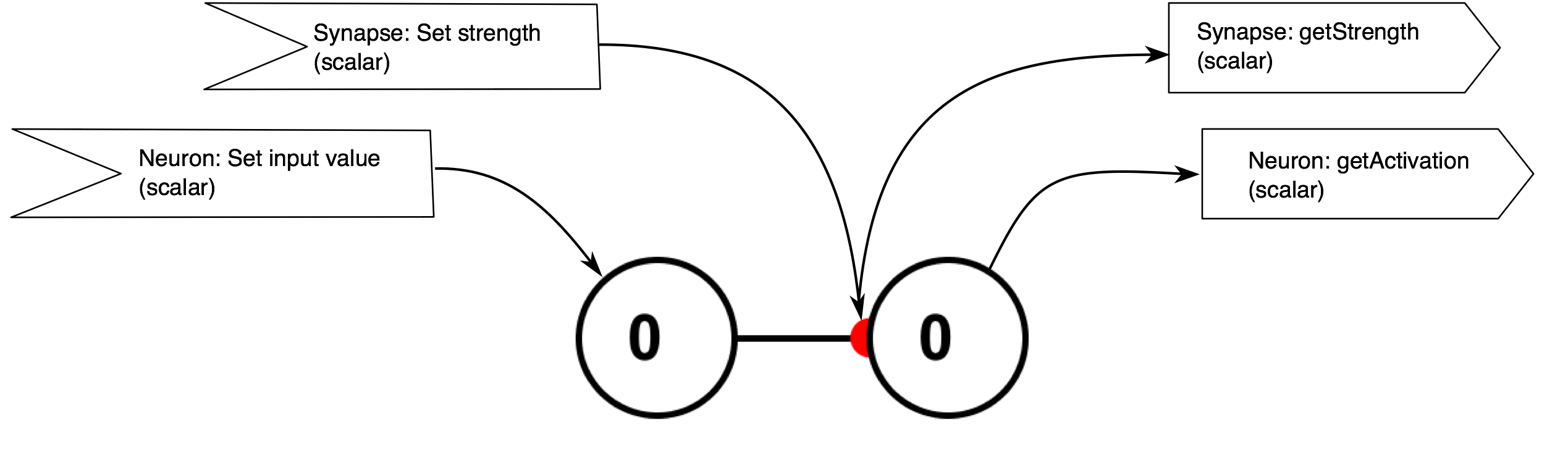 Neurons produce scalar activations to send elsewhere, and consume activations from elsewhere. Easy! Same idea with synapses. In both cases, a quick way to set up the coupling is to right click (on the neuron, or synapse) and use the coupling menus that appear at the bottom of the menu.