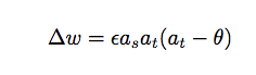 This is a variant of Hebbian learning in which the learning rate is proportional to the difference between the post-synaptic activation at and a threshold θ, where θ can be fixed or sliding.