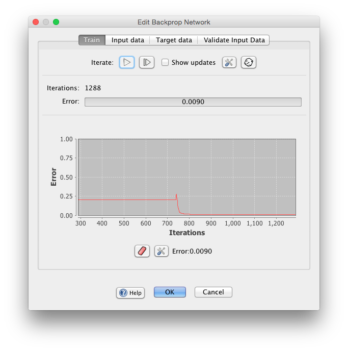 Show Updates: If this is selected then you will see the weights change in Simbrain while the algorithm is run. This slows things down but is pedagogically useful.