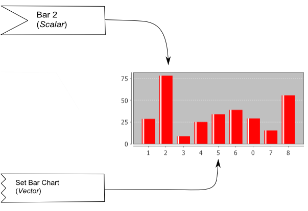 There are basically two ways to couple to barchart. Scalar couplings attach to scalar consumers that set a specific bar (if it is out of range the chart itself must be set). Vector couplings attach to a "set bar chart" attribute to set the values of the whole bar chart.