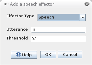 Utterance: The string or phrase associated with this effector. A hearing effector gets activated when it senses a speech effector of the same utterance.